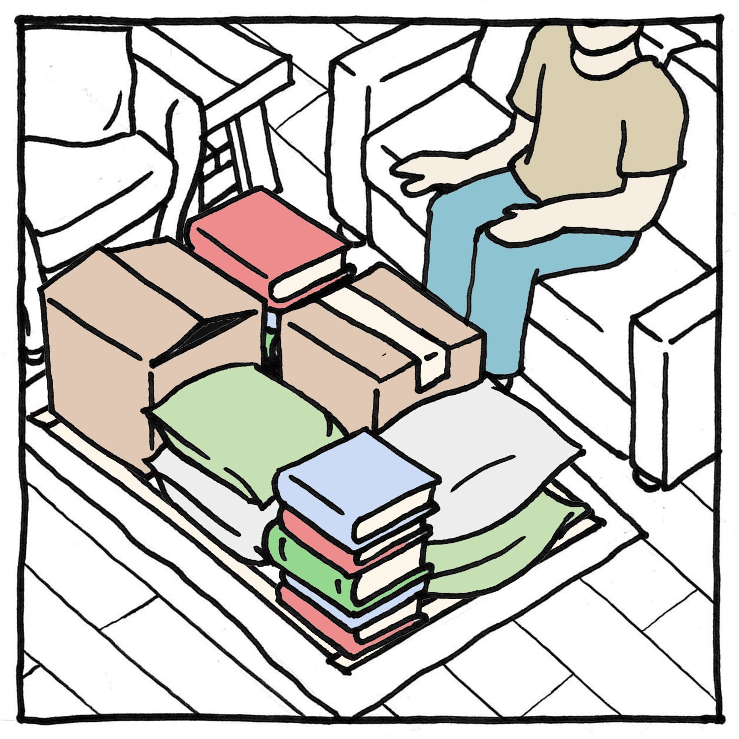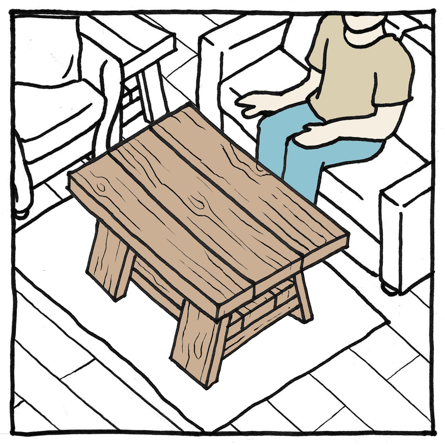 Use the space as you typically would. Walking and sitting in close proximity will let you know if you need to adjust the size. For example, if you find yourself walking into the taped out area, it might suggest a smaller size is needed!