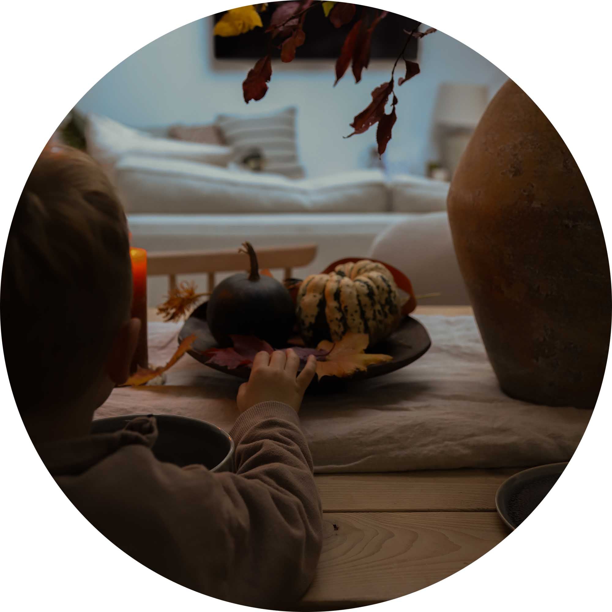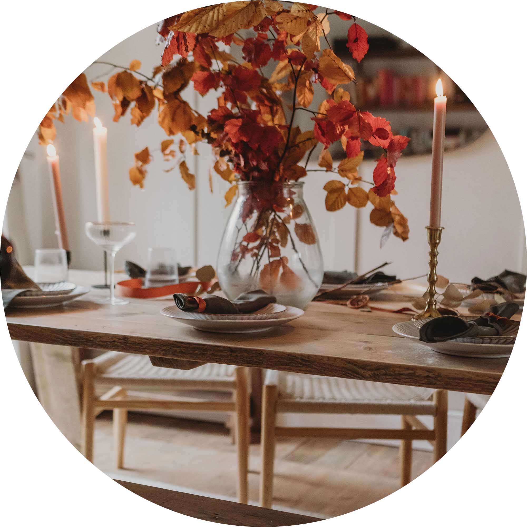 Seasonal flowers, Autumn leaves, pinecones and other natural decor, all help to calm your interior, creating moments of stillness.