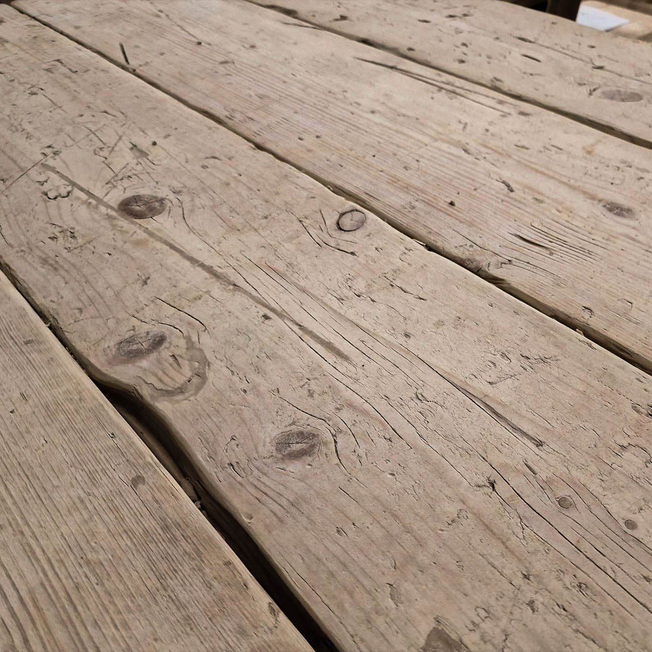 Our reclaimed wood is sourced from an industrial background, and as a result can feature a wide range of historical "imperfections", including: Saw marks, nail holes, hammer dents, scuffs, cracks, paint flecks and rust traces to name a few.