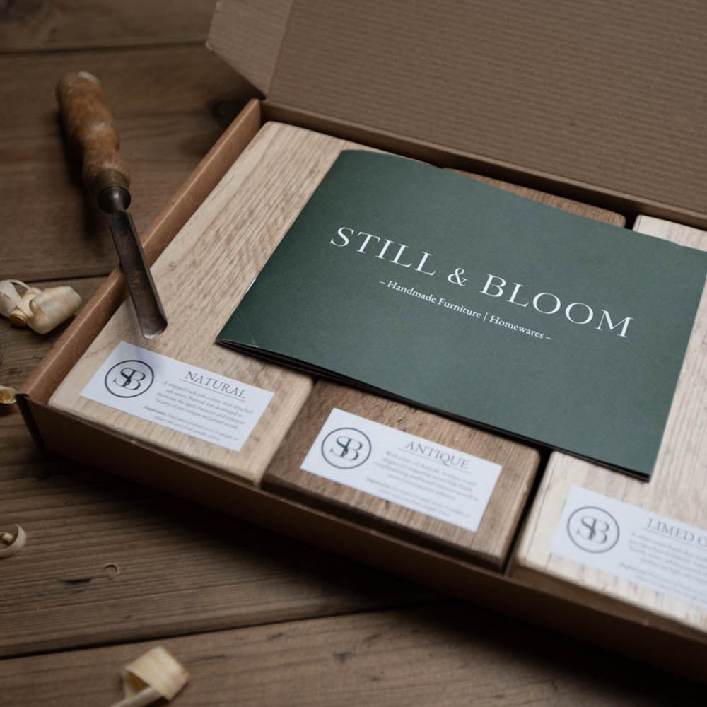 If you'd like to get to grips with our reclaimed wood before ordering, then the perfect place to start is with our newly crafted Still & Bloom Welcome Pack. Featuring three full-thickness samples in each of our reclaimed finishes and an introductory welcome brochure!