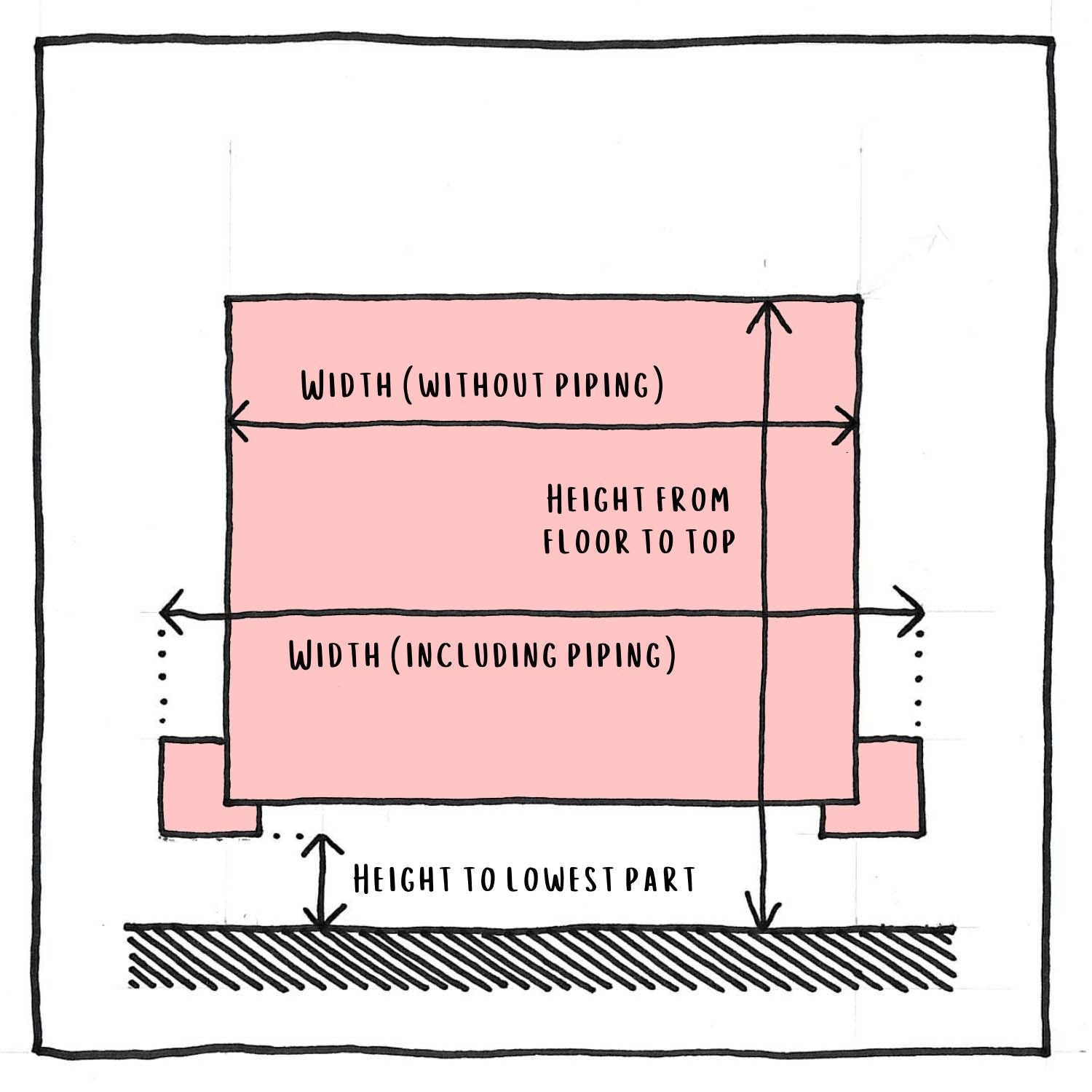 Overall dimensions: The most important dimensions for us are the width, depth and height, as these define the extremities of your radiator.